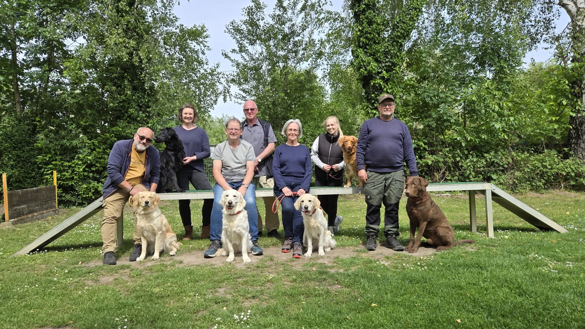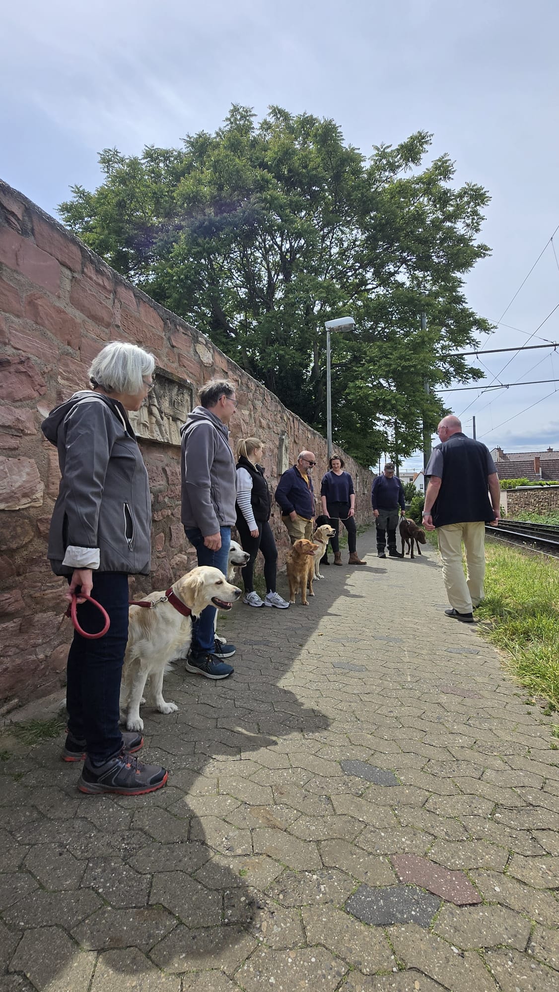 Dann betrat Achim Behringer, unser Prüfer, den Platz. Schon nach wenigen Worten mit seiner lockeren, freundlichen Art und dem trockenen Hundehumor war klar – dieser Mann weiß nicht nur, wo vorne und hinten am Hund ist, sondern auch, wie man Menschen beruhigt, denen die Aufregung ins Gesicht geschrieben steht.