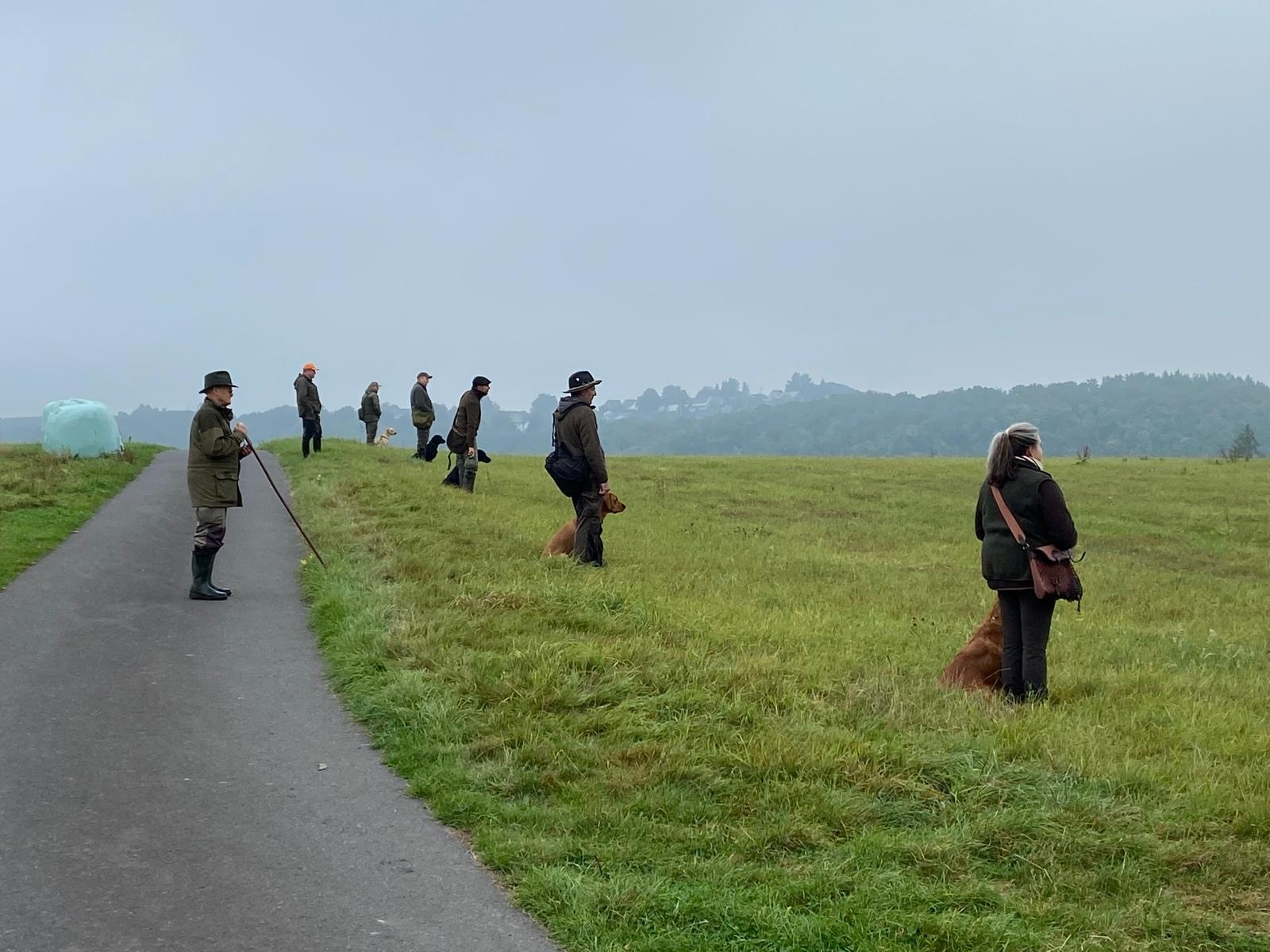 Nach einem kurzen Fußmarsch durch das Revier begann die Prüfung mit der freien Verlorensuche, die alle Hunde gemeistert haben. Im Anschluss daran wurde die Schussfestigkeit im Feld überprüft– was für alle kein Problem war.