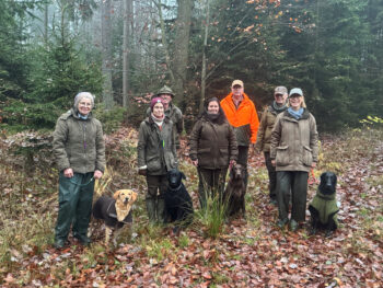 Das Revier von Manfred Frank bot vielerlei Abwechslung, ein Graben bei der Schleppe, Luzerne beim Einweisen, einige Hügel bei der Verlorensuche und ein See mit Schilf mitten im Wald für die Wasserarbeit.