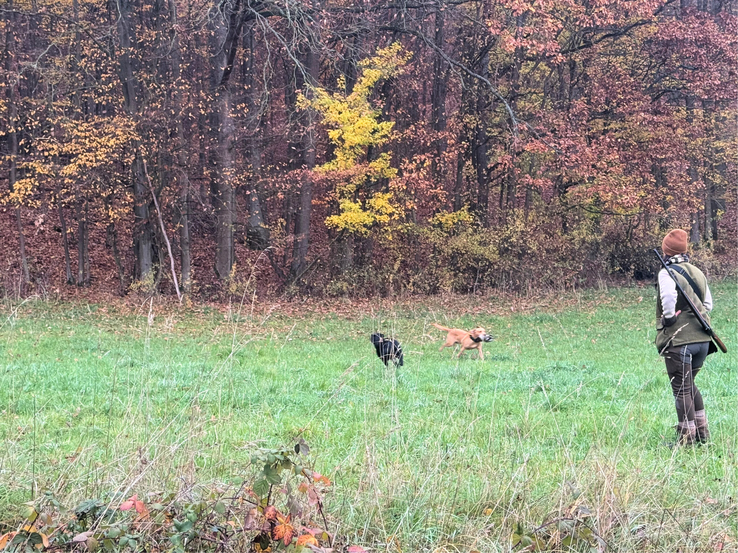 Eine Altgrasfläche mit Brombeeren durchziehen und Reisighaufen – ein Gelände, das gerades Lining erforderte, denn die Hunde konnte schnell außer Sicht geraten.